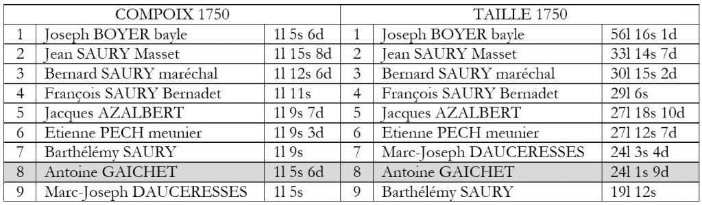Antoine Gaichet figure parmi ces privilégiés, c’est dire le rang qu’il occupe dans la hiérarchie sociale de la communauté de Lanet.