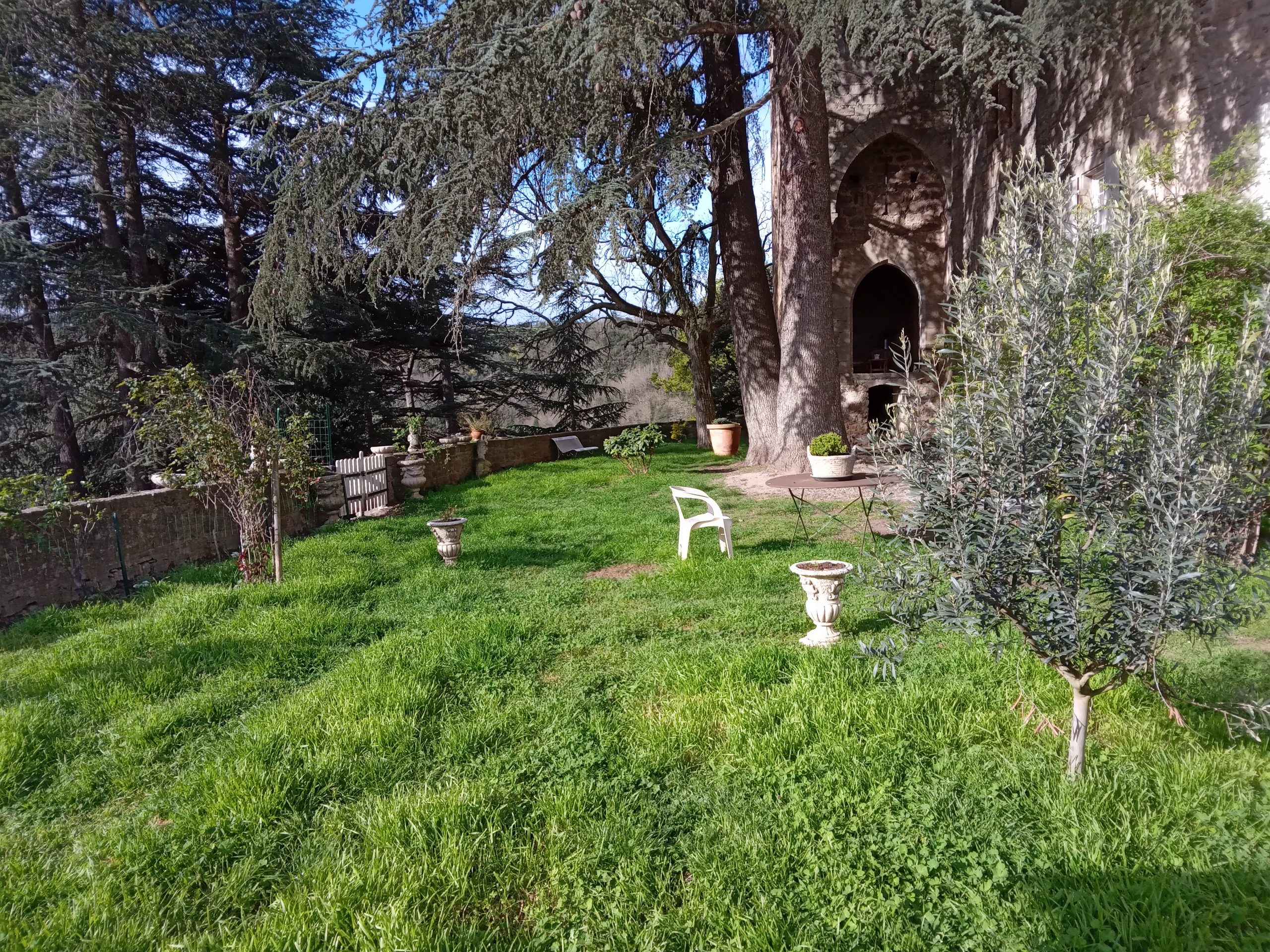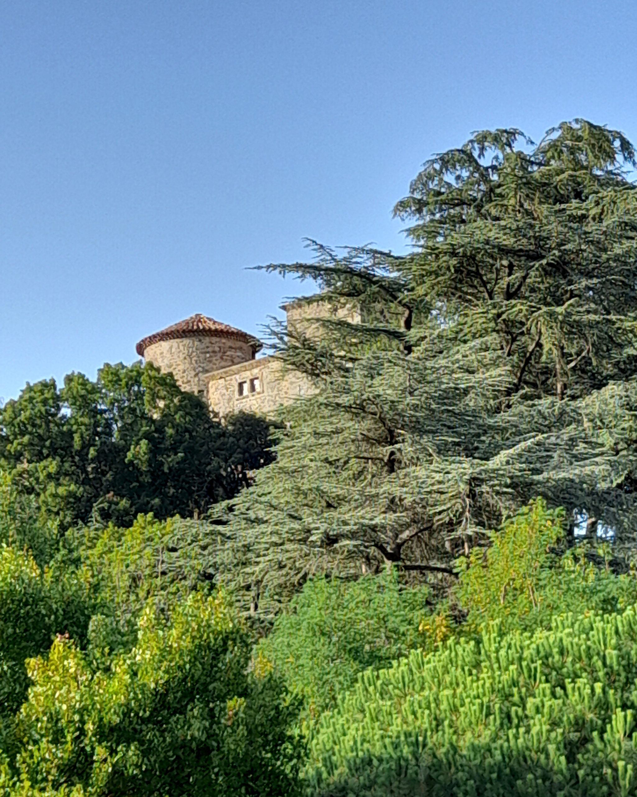 En ce qui concerne le parc, qui se déroule de l’esplanade devant le château jusqu’à surplomber la route de Monjoi, il a fallu procéder depuis 2017 (arrivée des nouveaux propriétaires) à un énorme débroussaillage incluant l’élagage de plusieurs cèdres. Un travail de longue haleine qui se prolonge avec la réfection par petites sections des murets de pierres sèches bordant le sentier qui serpente pour permettre la traversée de ce parc très pentu. Hélas la tempête Nils de février 2026 a abattu un des cèdres du parc, fort heureusement sans dommage humain mais ruinant une bonne partie du travail déjà engagé.