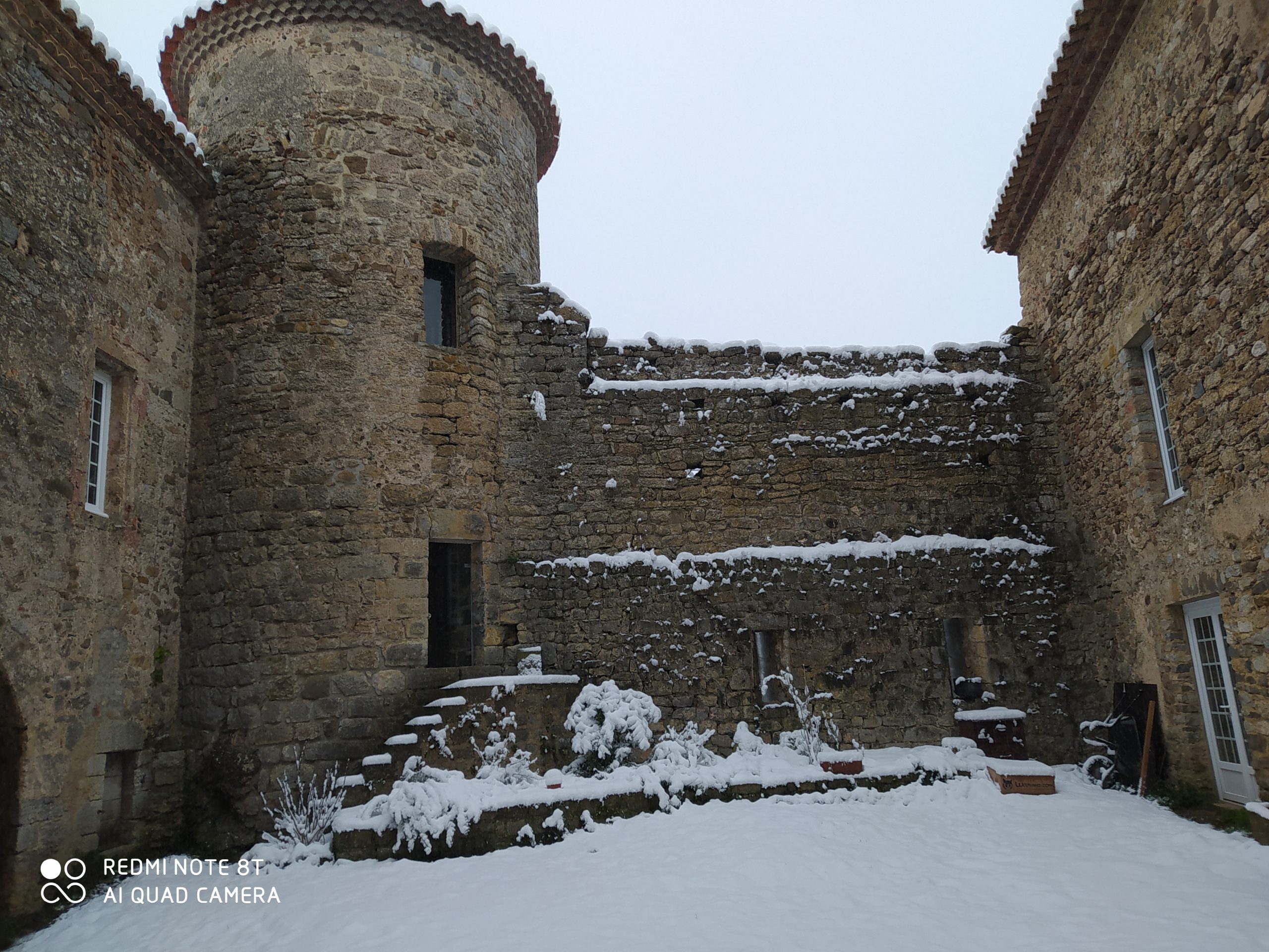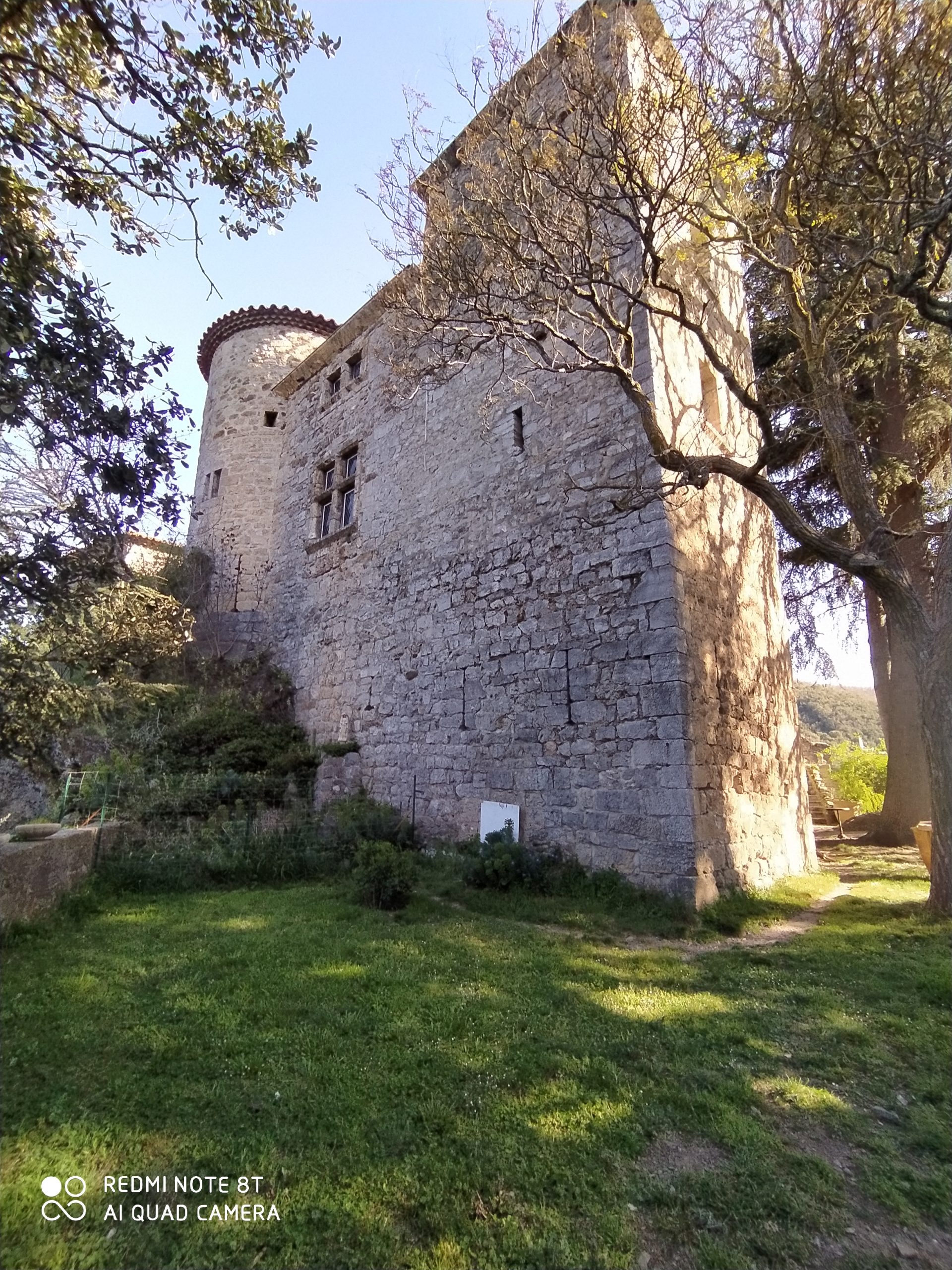 Au commencement le château n’était qu’une tour, la tour carrée mais je vous parle d’un temps que les moins de mille ans ne peuvent pas connaitre… En effet cette tour daterait du XIème siècle (à cent ans près : les permis de construire de l’époque étaient peu précis sur le sujet !). Ancrée sur le rocher qui domine le village elle est aussi imposante qu’aux premiers jours, tant sa quadrature et la rectitude des arêtes sont intacts.